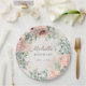 Elegant, custom birthday party paper plates for women. Decorated with beautiful blush pink watercolor flowers and sage green leaves on a magical glittery gold diamond background. Personalised with the name of the guest of honour and her party date. Contact me for assistance with customisation or to request matching or coordinating Zazzle products for your party.
