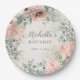 Pink Floral Green Foliage Gold Glitter Birthday Paper Plate