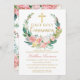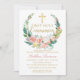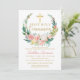 Pink Floral Greenery Wreath First Holy Communion Invitation