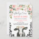 Pink Floral Holy Cow Cow Print First Birthday Invitation