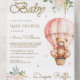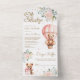 Pink Floral Hot Air Balloon Teddy Bear Baby Shower All In One Invitation