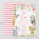 Pink Floral Jungle Safari Animals Girl Baby Shower Invitation