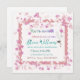 Invite guests with love and grace using this beautiful pink floral bridal shower invitation. Framed by a delicate lace-inspired border and a flurry of pink cherry blossoms, this design features a graceful stork illustration symbolizing a beautiful new beginning. Perfect for a soft, feminine, and traditional bridal shower or "soon-to-be Mrs." celebration. This square invitation offers plenty of space for RSVP details and event locations, all of which are easily customizable.