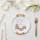 Add a touch of charm to your celebration with this personalised Baby Shower Tea Party paper plate. This whimsical design features a delicate floral teapot and teacup paired with a charming cake stand displaying delicious cupcakes topped with soft pink and yellow icing and bright red cherries, all set against a crisp white background. Elegant lilac typography and flowing script fonts add a sophisticated flair, perfect for honouring the mum-to-be. Ideal for a tea party baby shower, this whimsical paper plate brings sweetness and style to every setting.