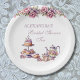 Personalise these elegant and whimsical Tea Party paper plates, perfect for your Tea Bridal Shower! Celebrate the bride-to-be with these beautifully designed plates, adorned with feminine blush pink and lilac flowers. The centerpiece features a charming tea pot, cake stand brimming with delicious tea cakes, and accompanied by a tea cup and saucer decorated with delicate floral patterns. These paper plates will add a touch of sophistication and whimsy to your Bridal Shower Tea Party, making every bite a memorable one.