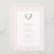 Pink Watercolor Floral Love Heart Valentine Bridal Shower Invitation with pink stripes.