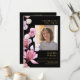 A black and gold elegant personalised photo pink floral order of service funeral memorial program. Designed by Thisisnotme©