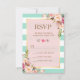 Pink Floral Mint Green White Stripes RSVP Card
