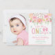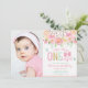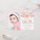 Pink Floral Miss Onederful 1st Birthday Photo Invitation