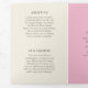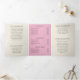 Elegant floral trifold brochure featuring a watercolor painted pink cherry blossom flower along with your business name over an ivory background. The outside has a template for "About Us", "Our Mission" and "Contact Us" over a pink background. The inside has multiple templates for information about your business on the outer panels and a price list in the middle panel. This chic design is great for a beauty, hair or nail salon.