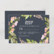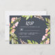 Pink Floral Modern Dark Blue Wedding RSVP Card
