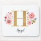 A beautiful, feminine monogrammed pink floral mouse pad, featuring pink flowers and a faux gold monogram letter H. Personalise the mouse pad by adding your name underneath the monogram. Makes a fun gift for a friend or for a bridesmaid gift. Designed for you by Blackberry Boulevard.
