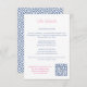 Pink Floral Navy Monogram Wedding Details QR Code Enclosure Card