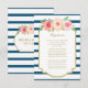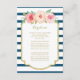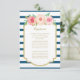 Direction card inserts for wedding in dark navy blue and white stripes pattern with gold vintage border, rustic pink watercolor flowers and handwritten style lettering. Customise these cards with your wedding directions, accommodations or other information to be included with your wedding invitations, also perfect for anniversary parties or birthday parties. Available in a wide range of matching wedding products.