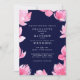 Pink Floral Watercolor Floral Wedding Invitation. Dark Navy Background. Contact Designer for changes to background colour or removal of flowers.