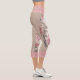 Pink Floral on Light Pink With Dark Pink Band Capri Leggings