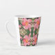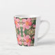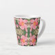 The pink floral pattern on this Latte Mug was created from an original photograph by ZoeSPEAK of pink jatropha flowers and buds blooming in the garden. The closeup photo shows the yellow centre of the flower amid the pink petals. The green leaves of the flower on a beige background finish the pattern.