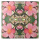 The pink floral pattern on this large Ceramic Tile was created from an original photograph by ZoeSPEAK of pink jatropha flowers and buds blooming in the garden. The closeup photo shows the yellow centre of the flower amid the pink petals. The green leaves of the flower on a beige background finish the pattern.
