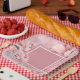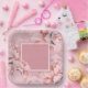 Pink floral peony flower paper plate. The collection consist of home decor, party supplies, and casual clothing.