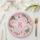 These family reunion pink floral paper plates are designed for summer party tableware. Elegant pastel pink roses and monstera leaves patterns and a plaid frame decorate the plates. Template makes it easy to personalise with your family name, initial letter and year. You can customise these plates for other occasions as well.