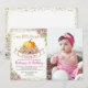 Pink Floral Pumpkin Glitter Girl Birthday Photo Invitation