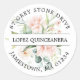 Add a special touch to all your Quinceanera envelopes with this elegant round design. It features a bouquet of blush pink roses in the centre. Bright pink rosebuds add a dash of colour. Sage green leaves give it a rustic botanical vibe. Your name and quinceanera are written across the centre on a white strip. Your address is added in curved text above and below the rose bouquet. This item is part of the Quinceanera Elegant Pink Rose Floral collection. You'll find many coordinating items in it.