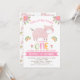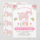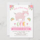 Pink Floral Rainbows Little Piggy 1st Birthday Invitation