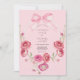 Pretty in pink wedding invitation with shades of posies creating a ribbon frame with simple fonts and pink background create this lovely wedding invitation for any season. 100% customer satisfaction with Zazzle every day.