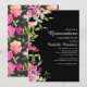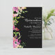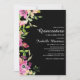 Pink Floral Sage Green Leaves Black Quinceañera Invitation