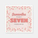Make her girl seventh birthday party shine with this stylish custom cocktail napkin featuring bold pink seven typography and a cute floral pattern. The simple template showcases a minimalist and modern design, enhanced with elegant chic flowers for a sweet, sophisticated touch. Highlighting the number 7, this napkin pairs beautifully with matching custom party supplies, adding a personalised and charming detail to her special celebration.