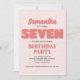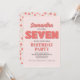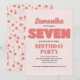 Celebrate her big day with this girl’s seventh birthday party invitation! Featuring pink "seven" typography, a cute floral pattern, and a simple template, this design is perfect for a modern, minimalist celebration. The whimsical calligraphy script adds a playful touch, while the elegant chic flowers bring a stylish whimsy vibe. Personalise this fun and charming invite today for a memorable birthday celebration!