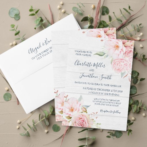 Rustic Wood Blush Pink Floral Spring WeddingDesigned by Dreaming Mind Cards