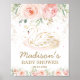 Pink Floral Swan Baby Shower 1st Birthday Welcome Poster