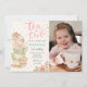 Pink Floral Tea For Two Birthday Photo Invitation.
