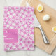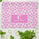 Stylish pink pattern of daisy flowers. Modern girly typography script name.