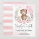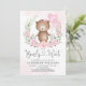 Pink Floral Teddy Bear Balloons Girl Baby Shower Invitation