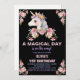 Pink Floral Unicorn Birthday Invitations