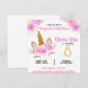 Pink Floral Unicorn Gold Glitter Birthday Invitation. Make a statement with this personalised, themed birthday party invitation. You can easily send it through text or print and mail it to your guests.