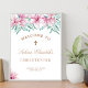 A modern spring or summer baby girl or boy Christening welcome sign poster featuring watercolor blush pink magnolia flowers, green foliage, and eucalyptus leaves and a classy handwritten style calligraphy script. +++++++++++ Easy to personalize it with your details! ++++++++++ Suitable for modern floral, outdoor garden or summer backyard elegant newborn baby baptism ceremonies and receptions.