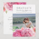 Pink flowers watercolor photo graduation announcement and graduation party invitation in one.