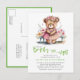 Pink Floral We Can Bearly Wait Girl Baby Shower Invitation Postcard