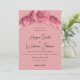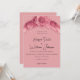 Pink barbiecore inspired wedding invitation, featuring a crest with pink monochromatic floral in a 3d paper-cut style.
