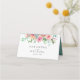 Beautiful pink watercolor flowers frame the top of this wedding place card. The front has a place for the guest's name and table number. The back contains the wedding couple's names and their wedding date. The underside is a soft deep green. The DIY bride will love making these for her wedding table decor.