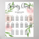 Wedding seating chart with pink flowers and black text - you can add bride's and groom's name, wedding date and guest's names (16 tables).