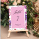 Pink Floral Wedding Table Number