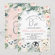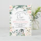 Cute snow much fun to turn one winter onederland themed birthday invitation featuring four cute winter animals, foliage or greenery and some pink flowers. The design also features a faux silver glitter word and snowflakes. This invitation is ideal for an winter onederland themed animals birthday party.