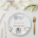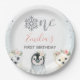 Pink Floral Winter Animals 1st Birthday Paper Plate