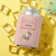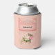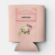 Can cooler with a floral rose bouquet with white and pink flowers. A faux diamond tiara. Background is pink with a floral pattern. Pretty and elegant design.