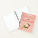 A personalised spiral notebook with a floral rose bouquet with white and pink flowers. A faux diamond tiara. Background is pink with a floral pattern. Pretty and elegant design.