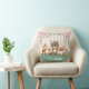 Girly woodland themed throw cushion featuring pretty pink watercolor roses and adorable forest animals - bear, deer, fox, chipmunk and a rabbit